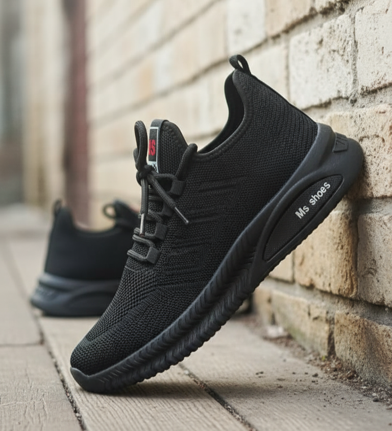 Clean. Confident. Unstoppable. Noir Pulse blends a sleek blackout design with ultra-light comfort. Its textured knit upper hugs your foot, while the bold side accents and grippy sole keep you grounded in every step. Made for all-day wear, this pair delivers a sharp street look without saying a word.