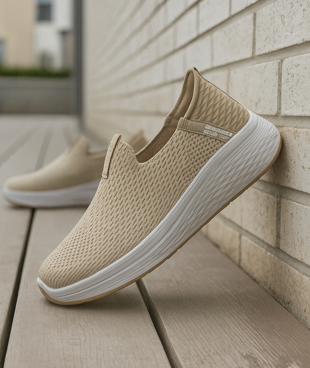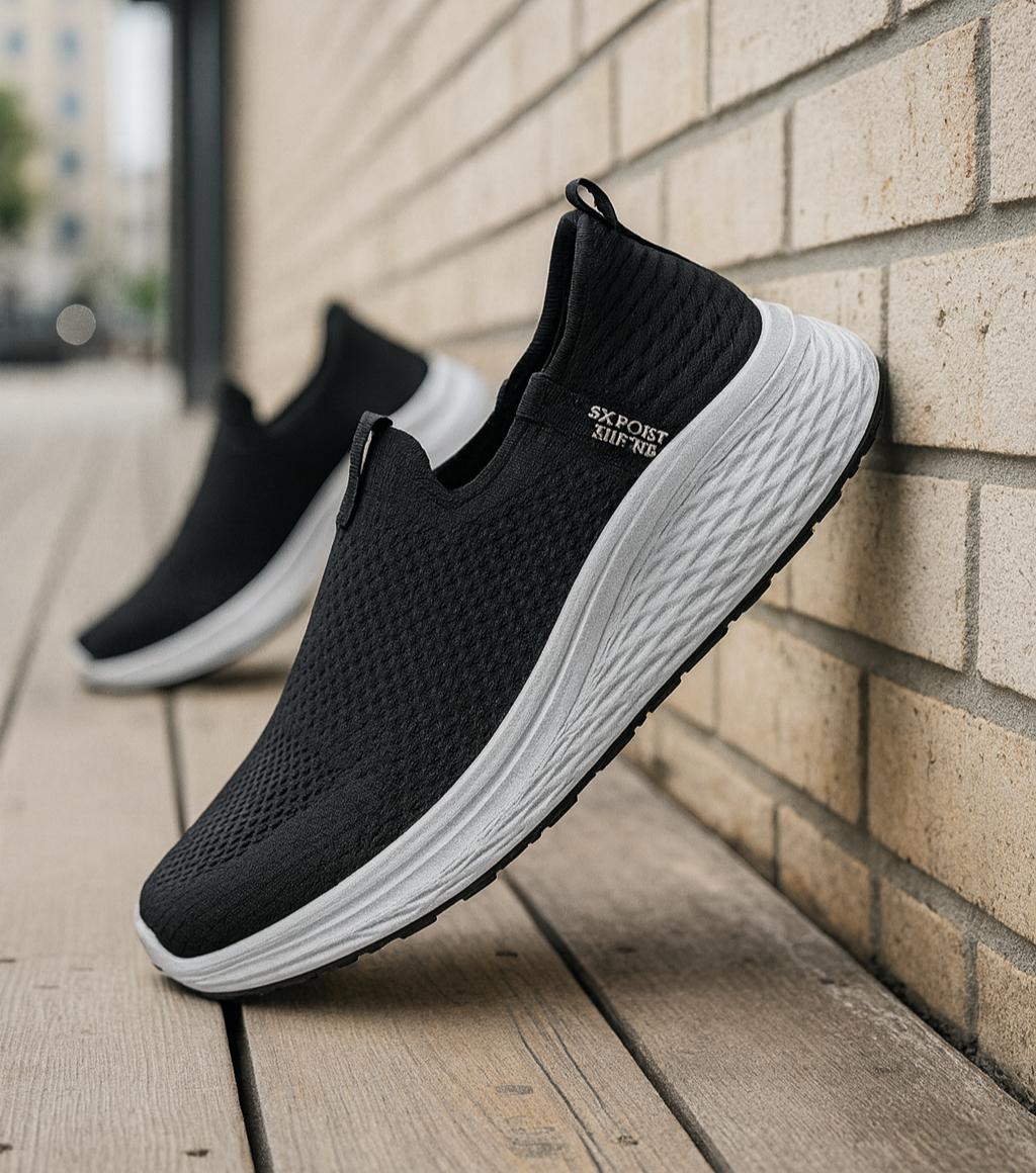 Designed for comfort and movement, the Stridex One features a breathable knit upper and a lightweight cushioned sole with a wave-texture finish. The raised heel collar provides a snug, adaptive fit, while the sleek minimal design makes it perfect for both daily wear and active use. A balance of style and performance in every step.